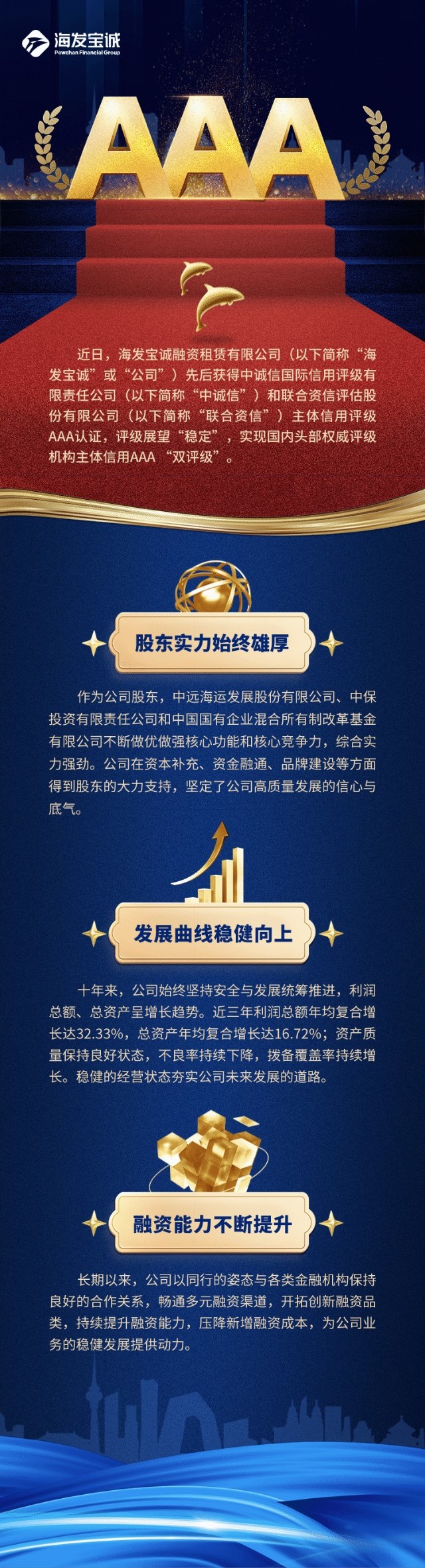 双重认证,海发宝诚获得两家国内头部权威评级机构AAA主体信用评级